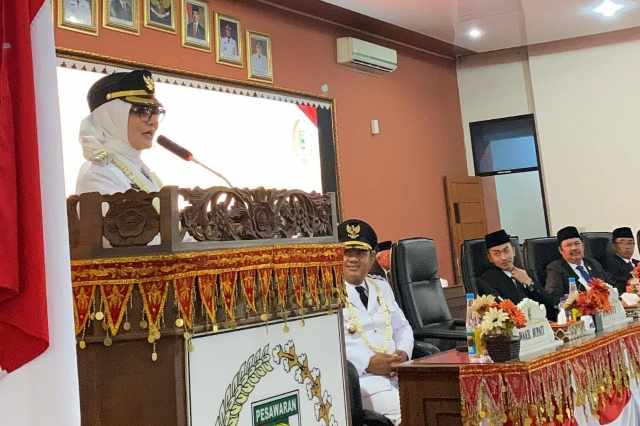 WARNALAMPUNG.ID – Bupati Pesawaran Hj. Nanda Indira Bastian, S.E., M.M., menyampaikan pidato perdananya dalam Sidang Paripurna DPRD Kabupaten Pesawaran, Rabu 27 Agustus 2025. Rapat ini menjadi momentum awal kepemimpinan Nanda bersama Wakil Bupati Antonius Muhammad Ali, S.H., pasca dilantik untuk memimpin Bumi Andan Jejama periode 2025–2030.