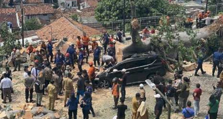 WARNALAMPUNG.ID — Dua unit mobil mengalami kerusakan parah setelah tertimpa pohon raksasa