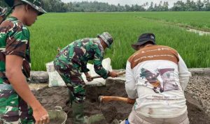 WARNALAMPUNG.ID (Pesawaran) – Cuaca yang cerah dan mendukung di Desa Gunung Rejo, Kec Way Khylau, Kab Pesawaran, menjadi penyemangat bagi Satgas TMMD 127 Kodim 0421/LS untuk terus mengenjot target pekerjaan rabat beton. Mereka bekerja keras dengan semangat yang tinggi, mengmix semen, mengangkut pasir, dan memasang batu.