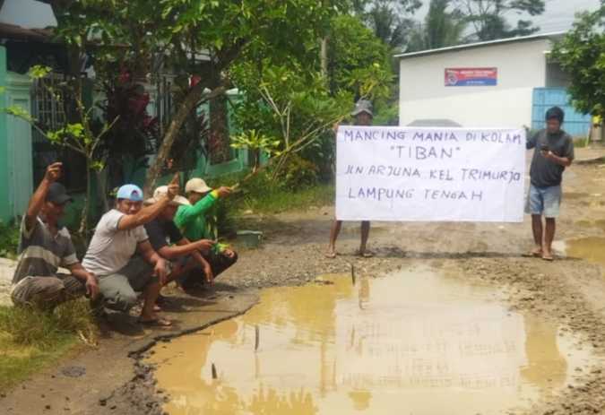 ‎Sebagai bentuk kekecewaan sekaligus sindiran, warga melakukan aksi unik dengan menebar ikan lele di jalan yang rusak lalu memancingnya. Aksi tersebut menggambarkan kondisi jalan yang kerap tergenang air saat hujan turun, hingga menyerupai kolam atau bahkan sawah.