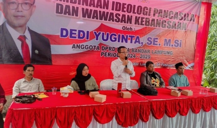 WARNALAMPUNG.ID — Anggota DPRD Kota Bandarlampung dari Fraksi PDI-P, Dedi Yuginta, menggelar kegiatan Sosialisasi Pembinaan Ideologi Pancasila dan Wawasan Kebangsaan (PIP-WK) di Kelurahan Kotabaru, Kecamatan Tanjung Karang Timur, pada Sabtu, 7 Februari 2026.