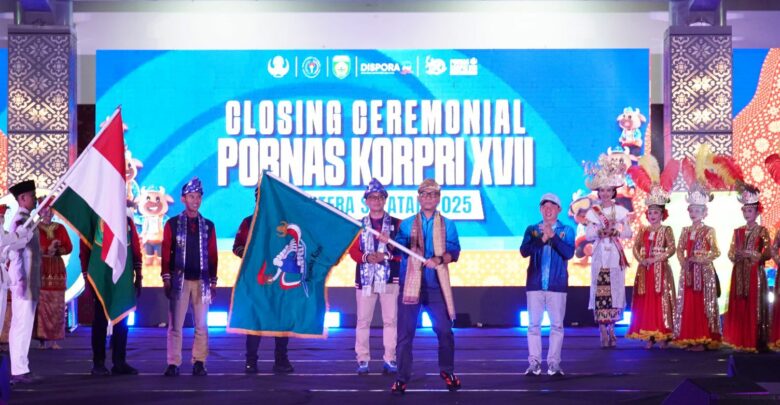 WARNALAMPUNG.ID – Provinsi Lampung resmi ditunjuk menjadi tuan rumah Pekan Olahraga Nasional (Pornas) Korpri XVIII Tahun 2027. Penetapan ini ditandai dengan penyerahan pataka atau bendera estafet dari Gubernur Sumatera Selatan, Herman Deru, kepada Gubernur Lampung Rahmat Mirzani Djausal dalam upacara penutupan Pornas Korpri XVII di Palembang, pada Sabtu, 11 Oktober 2025.