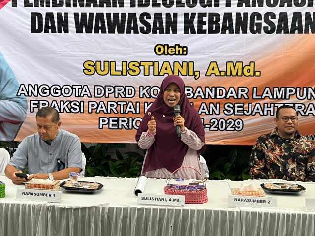 WARNALAMPUNG.ID — Anggota Komisi IV DPRD Sulistiani A.md dari Fraksi PKS menggelar kegiatan Sosialisasi Pembinaan Ideologi Pancasila dan Wawasan Kebangsaan (PIP-WK) pada Rabu, 21 Januari 2026. Kegiatan tersebut berlangsung di Jalan Imam Bonjol, Kelurahan Sumberejo, Kecamatan Kemiling, dan diikuti masyarakat dari berbagai latar belakang.