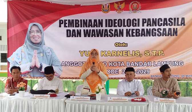 WARNALAMPUNG.ID – Anggota DPRD Kota Bandar Lampung, Yuni Karnelis, menggelar kegiatan Sosialisasi Pembinaan Ideologi Pancasila dan Wawasan Kebangsaan (PIP-WK) di Kelurahan Sumur Putri, Kecamatan Teluk Betung Selatan, pada Minggu, 8 Maret 2026.