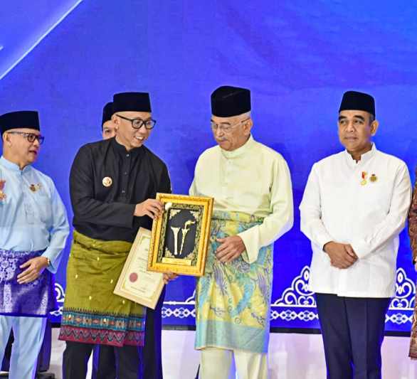 WARNALAMPUNG — Gubernur Lampung Rahmat Mirzani Djausal menerima anugerah Tun Perak dari Dunia Melayu Dunia Islam (DMDI) dalam acara Konvensyen DMDI Ke-23 di Hotel Borobudur Jakarta, pada Jum’at 24 Oktober 2025.