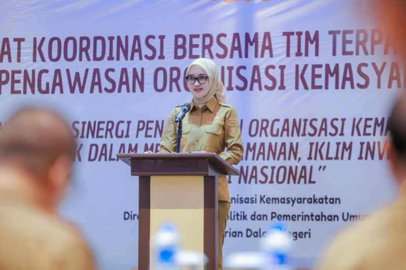WARNALAMPUNG.ID — Wakil Gubernur Lampung Jihan Nurlela menghadiri Rapat Koordinasi Bersama Tim Terpadu Nasional Pengawasan Organisasi Kemasyarakatan, yang diselenggarakan oleh Direktorat Organisasi Kemasyarakatan, Direktorat Jenderal Politik dan Pemerintahan Umum, Kementerian Dalam Negeri, di Hotel Akar & Resorts, Bandar Lampung, pada Selasa 21 Oktober 2025.