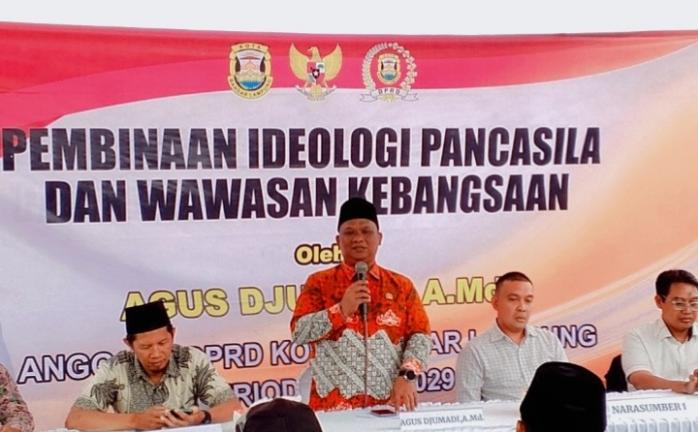 WARNALAMPUNG.ID — Anggota DPRD Kota Bandar Lampung dari Fraksi Partai Keadilan Sejahtera (PKS), Agus Djumadi, menggelar kegiatan Sosialisasi Pembinaan Ideologi Pancasila dan Wawasan Kebangsaan (PIP-WK) di Kelurahan Gunung Terang, Kecamatan Langkapura, pada Jumat, 20 Februari 2026.