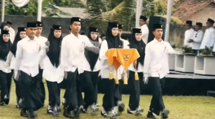 Suasana apel semakin semarak dengan lantunan shalawat dan pekik takbir dari para santri yang berbaris rapi mengenakan pakaian putih-hitam.