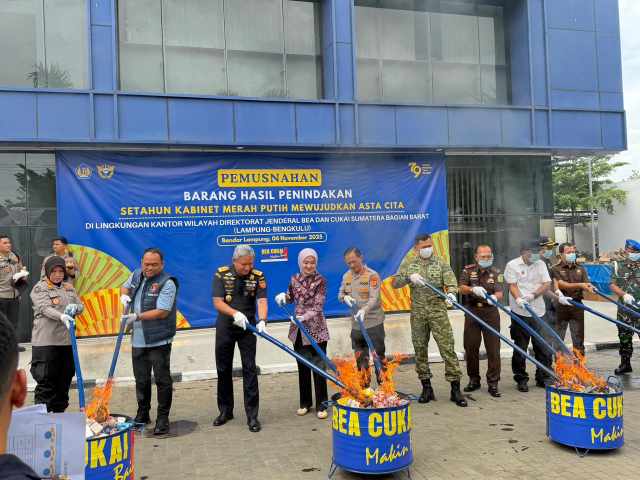 “Dalam upaya menjaga integritas dan efektivitas penindakan, Bea Cukai Sumbagbar bersinergi erat dengan Kejaksaan Tinggi, Polri, TNI, BNN Provinsi, serta Pemerintah Provinsi Lampung dan Bengkulu. Setiap langkah dilakukan secara profesional dan terukur sebagai bagian dari fungsi perlindungan masyarakat serta pengamanan keuangan negara,” jelas Agus, pada Kamis 6 November 2025.