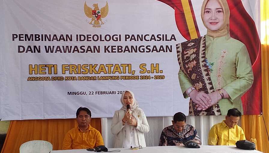 WARNALAMPUNG.ID – Anggota DPRD Kota Bandar Lampung dari Fraksi Partai Golkar, Heti Friskatati, S.H., menggelar kegiatan Sosialisasi Pembinaan Ideologi Pancasila dan Wawasan Kebangsaan (PIP-WK) di Kelurahan Gunung Agung, Kecamatan Langkapura, Kota Bandar Lampung, pada Minggu, 22 Februari 2026.