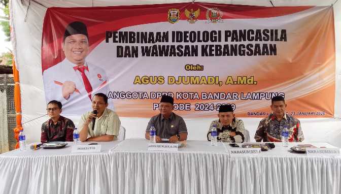 WARNALAMPUNG.ID — Ketua Komisi III DPRD Kota Bandarlampung dari Fraksi PKS , Agus Djumadi, menggelar kegiatan Sosialisasi Pembinaan Ideologi Pancasila dan Wawasan Kebangsaan (PIP-WK) di Kelurahan Langkapura, pada Jumat 23 Januari 2026, dengan mengusung tema “Memakmurkan Masjid dengan Nilai-Nilai Pancasila”.