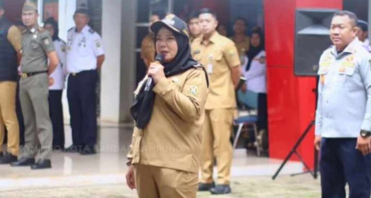 FOTO: ISTIMEWA WARNALAMPUNG.ID — Walikota Bandar Lampung Hj.Eva Dwiana memimpin Apel Siaga
