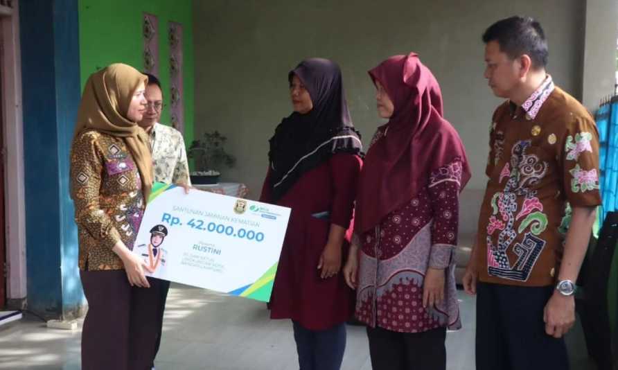 WARNALAMPUNG.ID – Pemerintah Kota Bandar Lampung kembali menunjukkan komitmennya dalam memberikan perlindungan sosial bagi masyarakat pekerja melalui program BPJS Ketenagakerjaan. Wali Kota Bandar Lampung, Hj. Eva Dwiana, menyerahkan secara langsung santunan perlindungan pekerja kepada Bapak Joko Marnoto dan Ibu Rustini di Perumahan Prasanti, Kecamatan Sukarame, pada Jumat, 6 Febuari 2026.