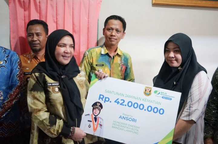 WARNALAMPUNG.ID – Pemerintah Kota Bandar Lampung kembali menunjukkan komitmennya dalam memberikan perlindungan sosial bagi masyarakat pekerja melalui program BPJS Ketenagakerjaan. Wali Kota Bandar Lampung, Hj. Eva Dwiana, menyerahkan secara langsung santunan perlindungan pekerja kepada ANSORI, Pulau Buton Gg Bonsay No.14 Jagabaya II, Kec. Way Halim, pada Jumat 6 Febuari 2026.